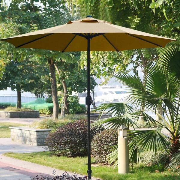 9 ft. Aluminum Market Umbrella in Tan with 8 Sturdy Ribs