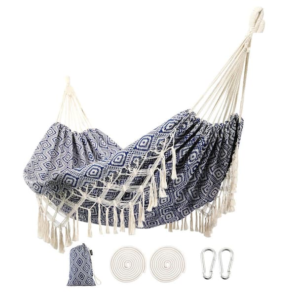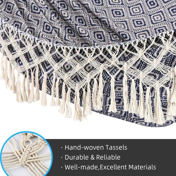 9 ft. Large Brazilian Thickened Non-Fading Cotton Fabric Portable Hammock in Blue Diamond with Handmade Deluxe Tassels