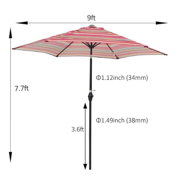9 ft. Market Patio Outdoor Umbrella with Button Tilt and Crank Red Stripes