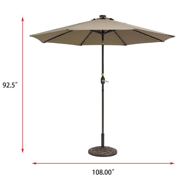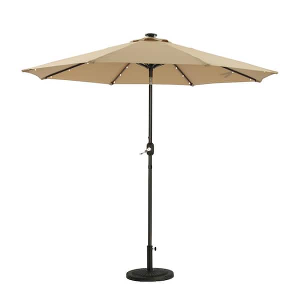 9 ft. Market Patio Umbrella in Khaik with LED Middle