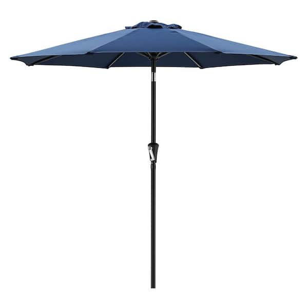9 ft. Metal Market Beach Umbrella Outdoor Patio Umbrella in Navy Blue