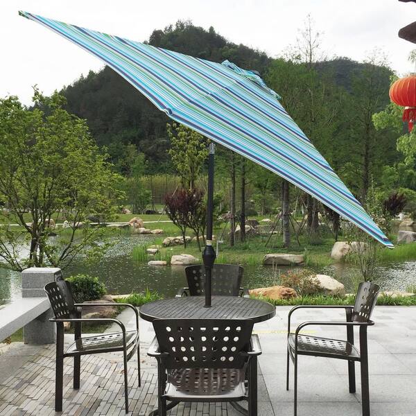 9 ft. Metal Market Patio Umbrella in Blue striped Family