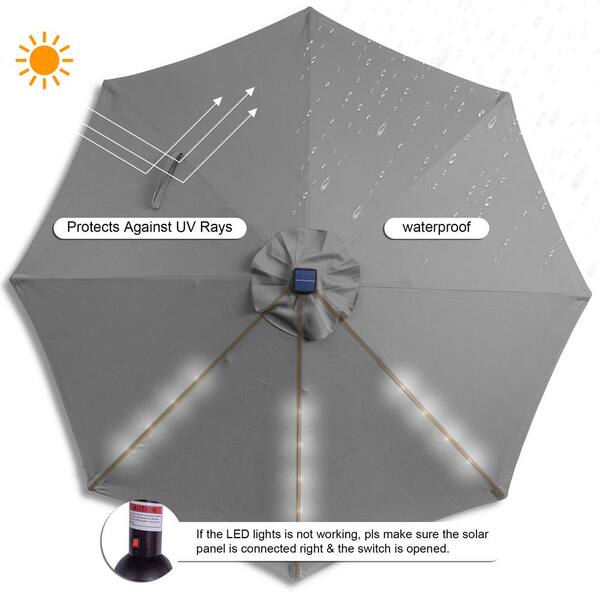 9 ft. Outdoor Market Patio Umbrella Table Umbrella with Crank and Push Button Till in Grey, Base Not Included