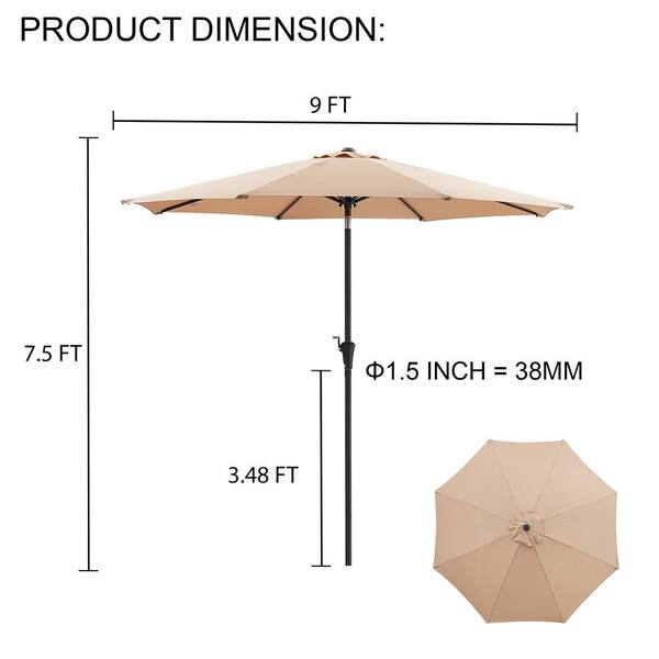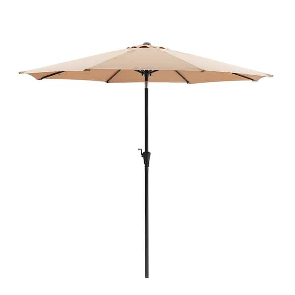 9 ft Outdoor Market Patio Umbrella with Manual Tilt, Easy Crank Lift in Khaki