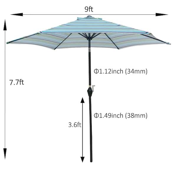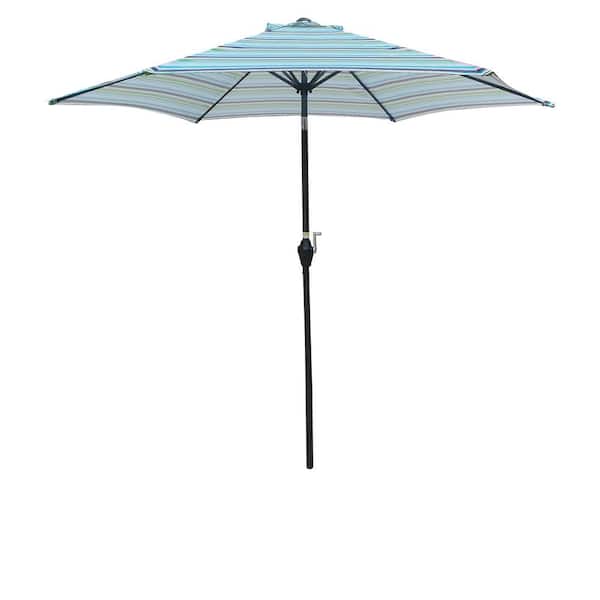 9 ft. Outdoor Patio Market Umbrella in Blue Stripes