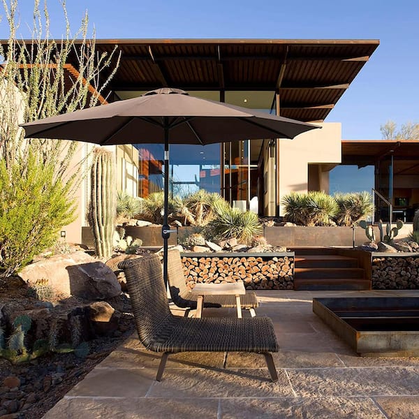 9 ft. Outdoor Patio Tilt Market Enhanced Aluminum Umbrella 8 Ribs in Brown