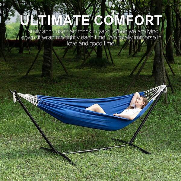 9 ft. Quilted Reversible Hammock, Capacity 2 People Standing Hammocks and Portable Carrying Bag ( Navy )
