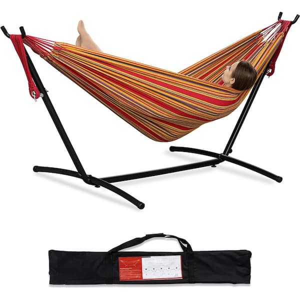 9 ft. Quilted Reversible Hammock, Capacity 2 People Standing Hammocks and Portable Carrying Bag ( Red )