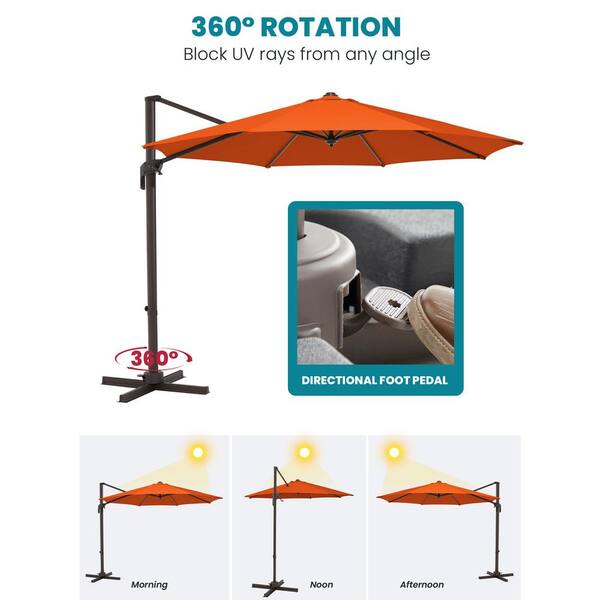 9 ft. Round 360-Degree rotation Cantilever Patio Umbrella in Orange