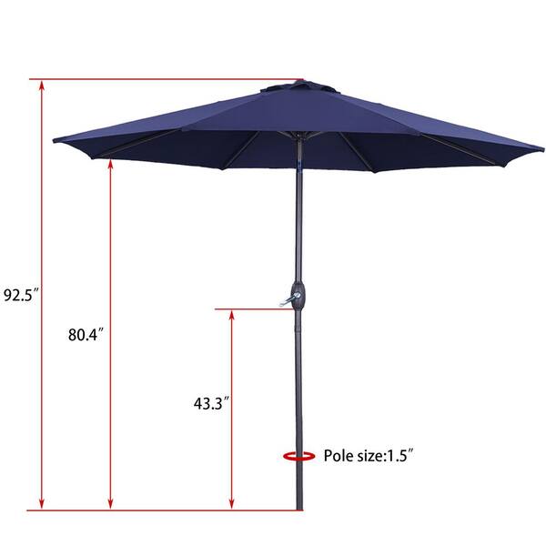 9 ft. Round Patio Market Umbrella with Water Resistant Push Button Tilt in Dark Blue