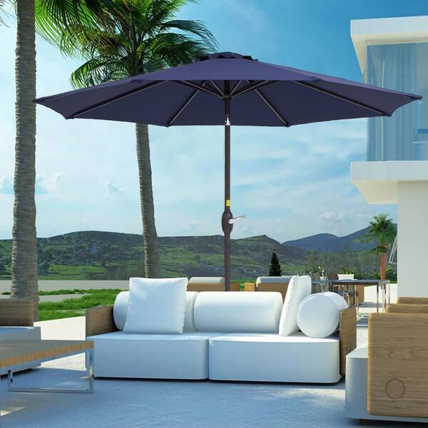9 ft. Steel Crank Lift Market Patio Umbrella with Push Button Tilt in Navy Blue