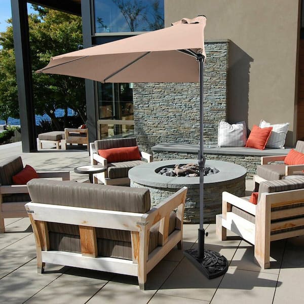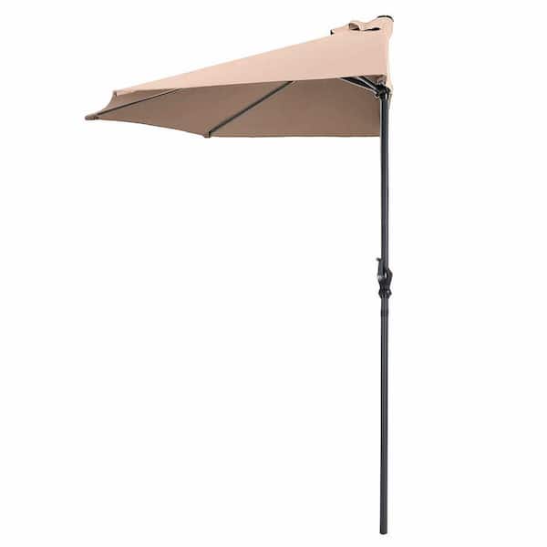 9 ft. Steel Market Bistro Half Round Patio Umbrella in Beige without Weight Base