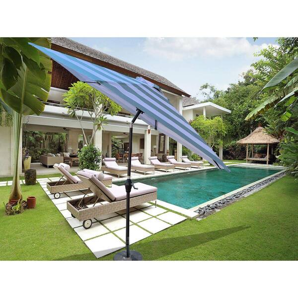 9 ft. Steel Market Patio Umbrella in Ice Blue Stripe with Crank and Tilt