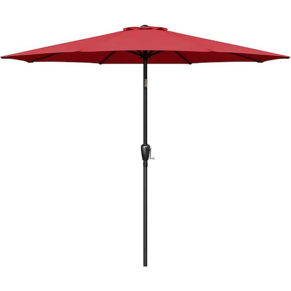 9 ft. Steel Market Push Button Tilt Patio Umbrella in Red with Crank and 8-Sturdy Ribs