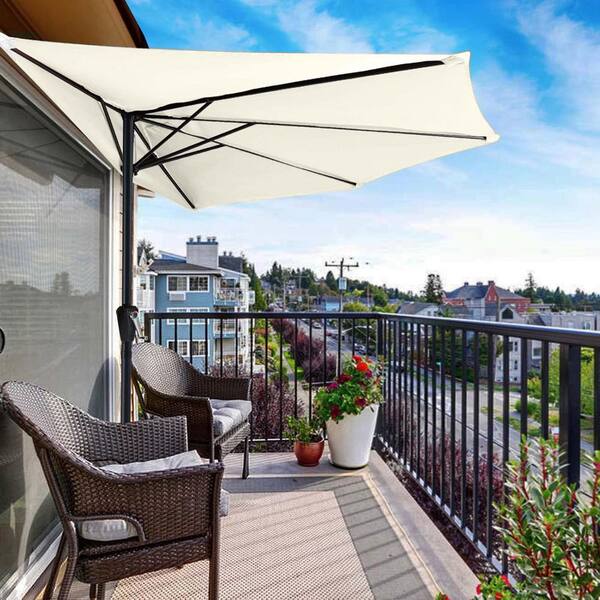 9 ft. Steel Market Tilt Half Patio Umbrella in Light Beige