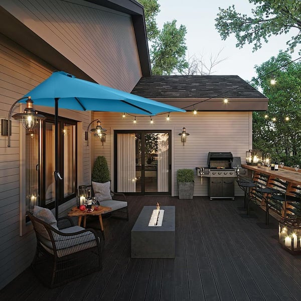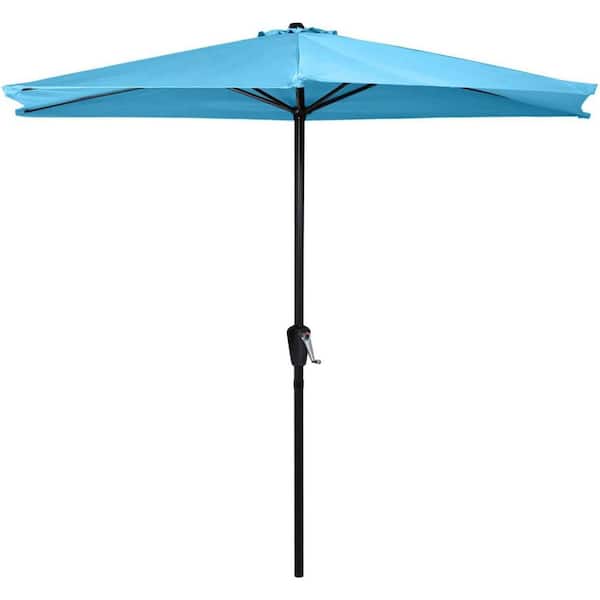 9 ft. Steel Market Tilt Half Patio Umbrella in Turquoise