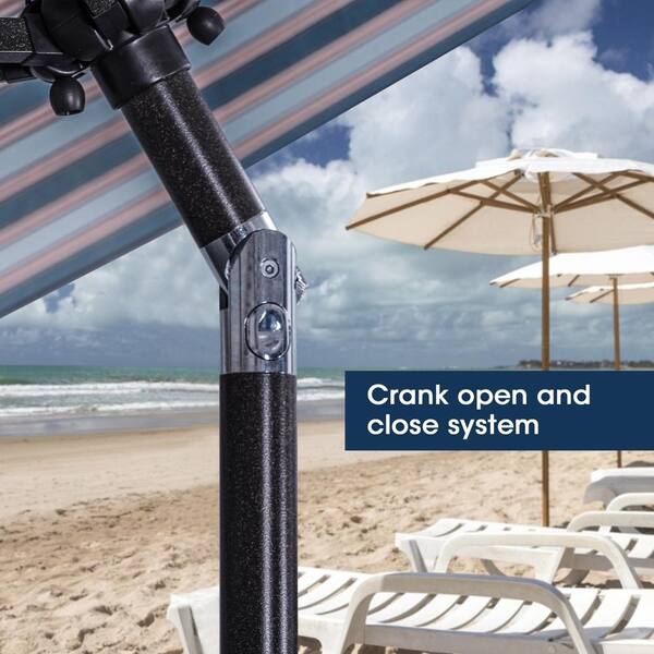 9 ft. UV Resistant Polyester, Adjustable Beach Umbrella in Stripe with Push-Button Tilt, Aluminum Pole and 6 Steel Ribs