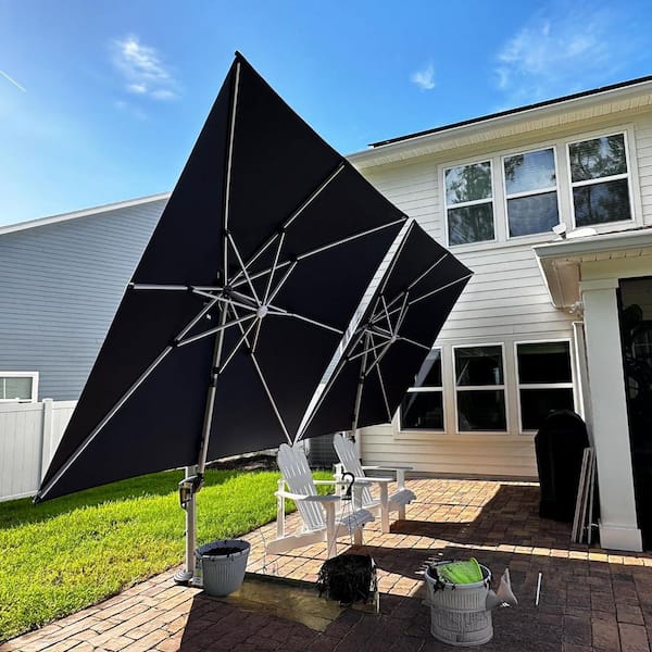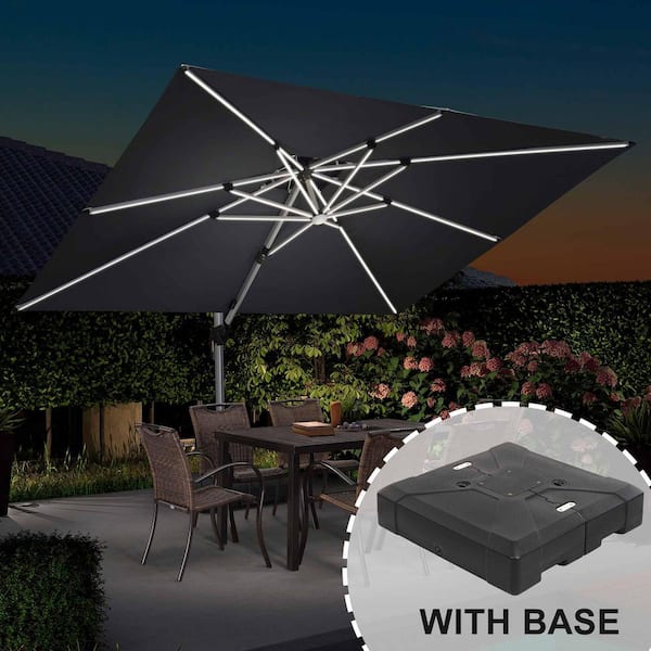 9 ft.x 12 ft. Aluminum Solar Powered LED Patio Cantilever Offset Umbrella with Stand, Gray