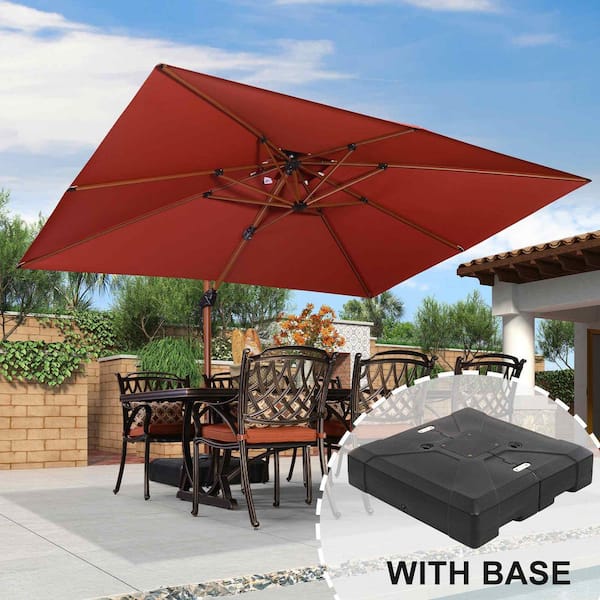 9 ft. x 12 ft. High-Quality Wood Pattern Aluminum Cantilever Patio Umbrella with Stand, Brick Red