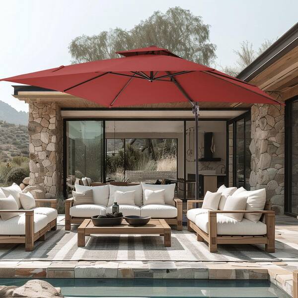 9 ft. x 9 ft. Aluminum Square Cantilever Patio Umbrella with Weighted Base in Red