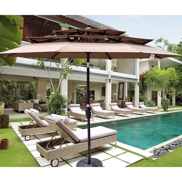 9 ft. x 9 ft. Outdoor Patio Mushroom 3-Tiers Umbrella with Crank and Tilt and Wind Vents