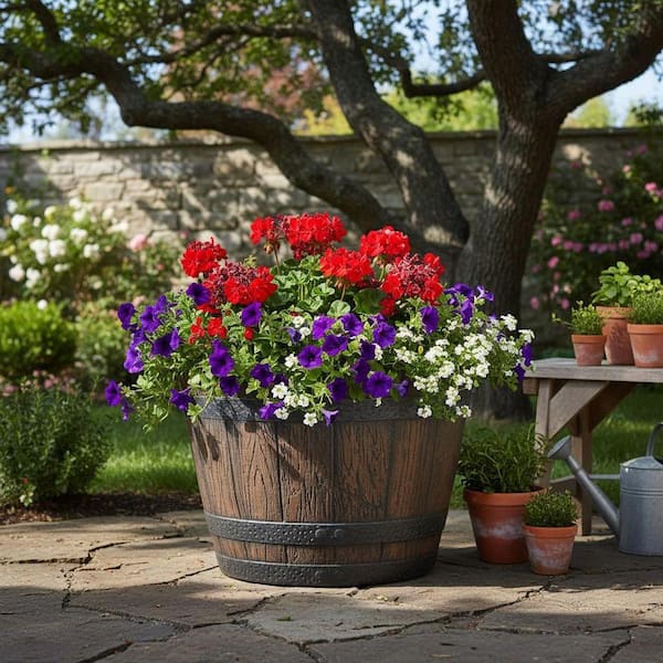 9 in. Dia x 6.25 in. H Walnut Brown Plastic 1.25 Gallons Round Whiskey Barrel Planter