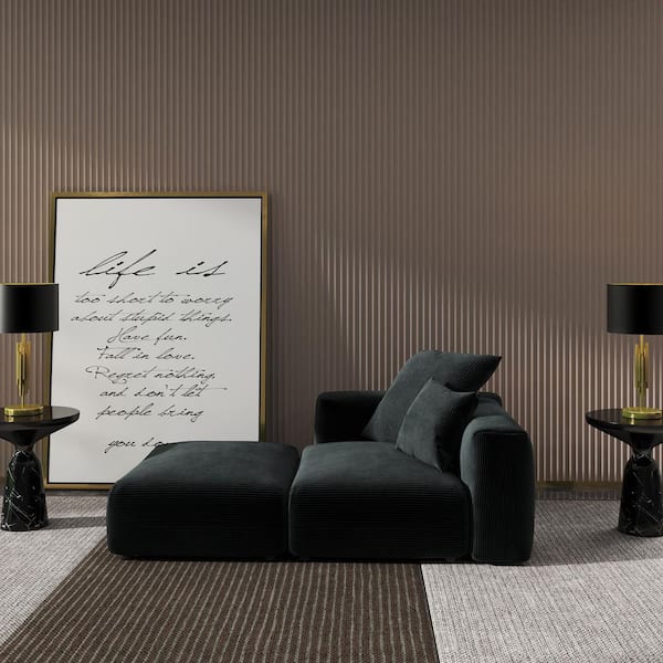 90.55 in. Wide Square Arm Corduroy Deep Seat Modula Sofa Couch with Removable Cover,Ottoman in Black