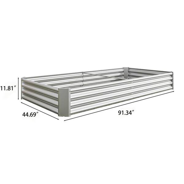 91 in. x 44 in. x 12 in. Rectangle Silver Galvanized Steel Raised Garden Bed Kit, Planter Box for Flower Vegetables Herb