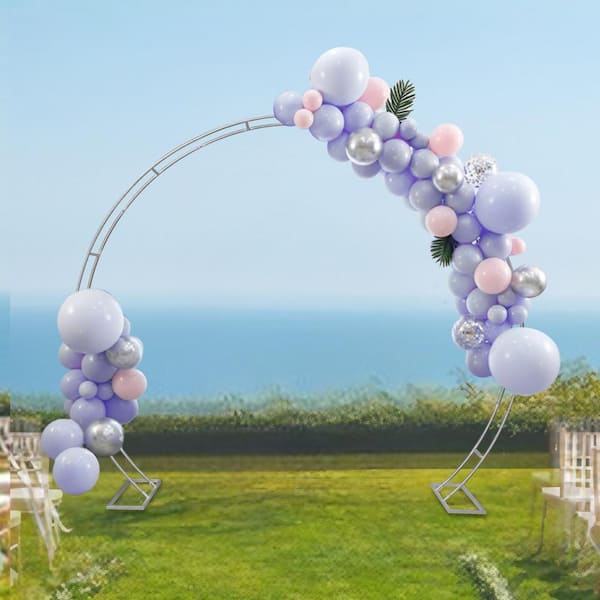 94.48 in. x 108.26 in. Round Silver Metal Iron Backdrop Wedding Arch Background Balloon Arch Backdrop Stand Arbor