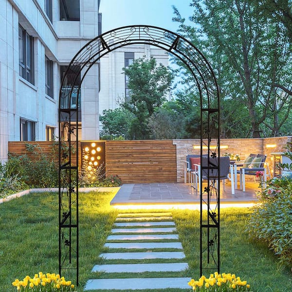 98 in. x 58 in. Metal Garden Arch with Gate, Garden Arbor Trellis for Climbing Plant, Wedding, Outdoor Patio Decor