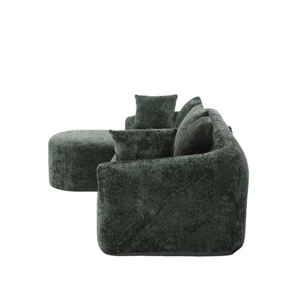 99.21 in Wide Round Arm Polyester L-Shaped Modern Upholstered Sofa in Green