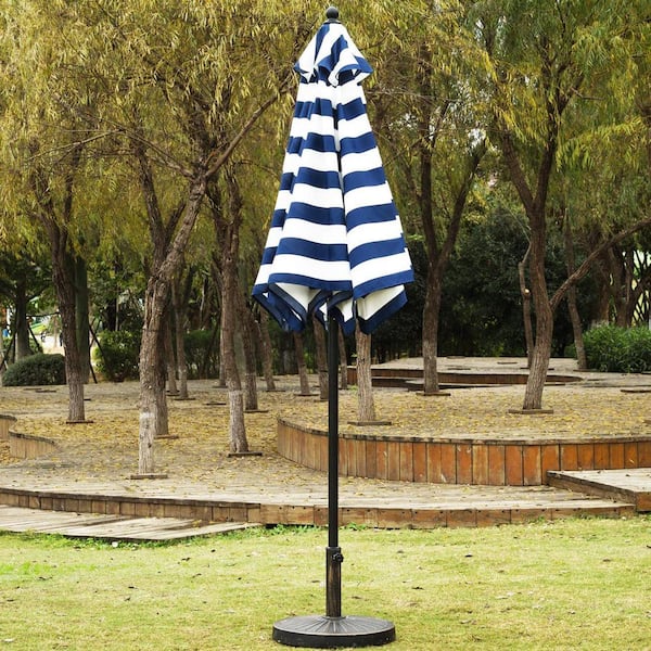 9ft. Aluminum Pole Market Push Button Tilt Patio Umbrella in Blue and White Stripes