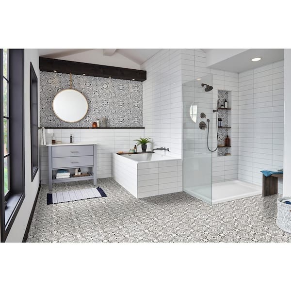 Take Home Sample - Encaustic Baroque Stamp 4 in. W x 4 in. L Waterproof Click Lock Luxury Vinyl Plank Flooring