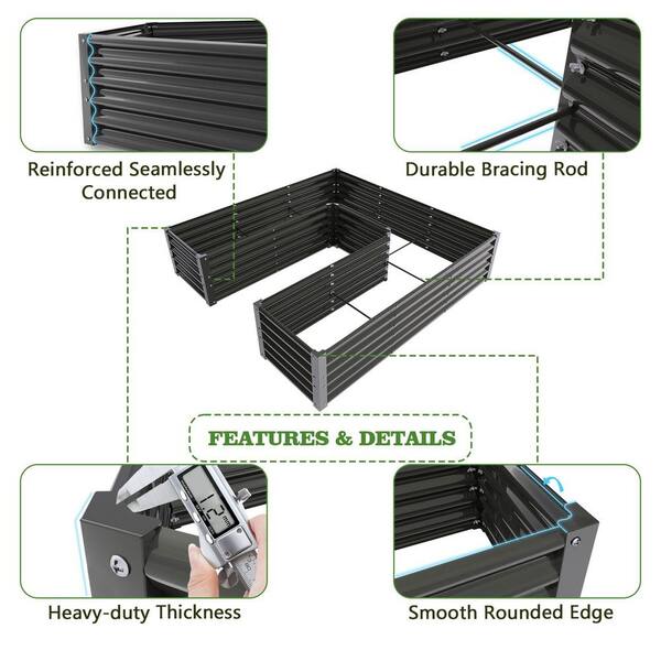 74 in. x 74 in. x 18 in. Outdoor Gray Anti-Rust and Easy-Setup U-Shaped Galvanized Steel Raised Garden Beds