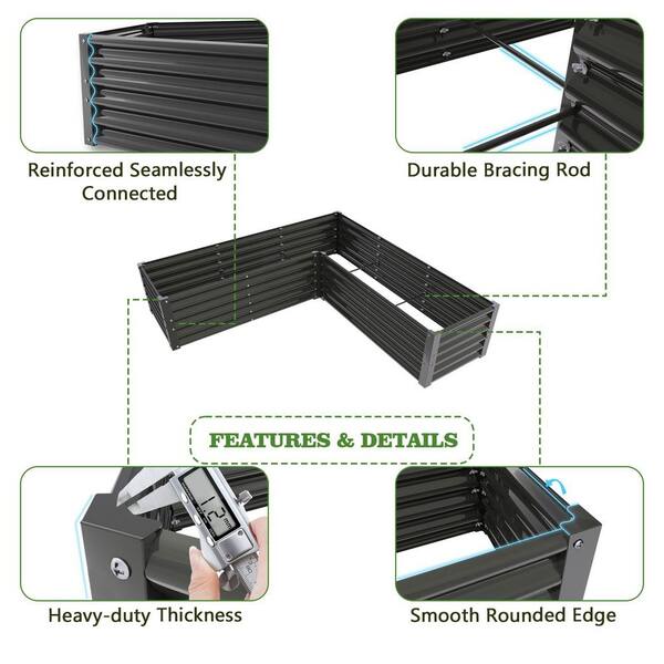 74 in. x 74 in. x 18 in. Outdoor Steel Gray Anti-Rust and Easy-Setup L-Shaped Galvanized Raised Garden Beds