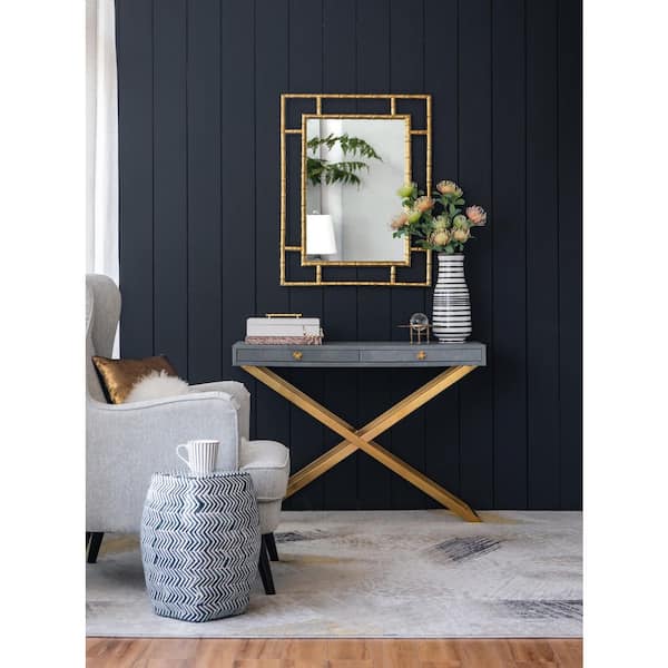 43.3 in. Gray/Gold Rectangle MDF End Table