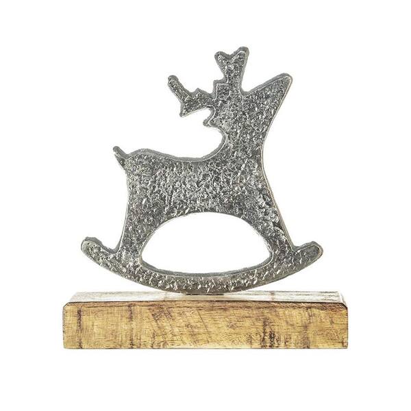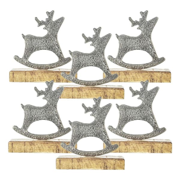 Aluminum Rocking Deer On Mango Wood Base - Set of 6 - Black/Brown