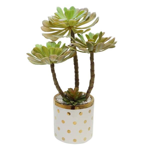 Artificial Potted Succulent Stem in Polka Dot Vase Green/Gold