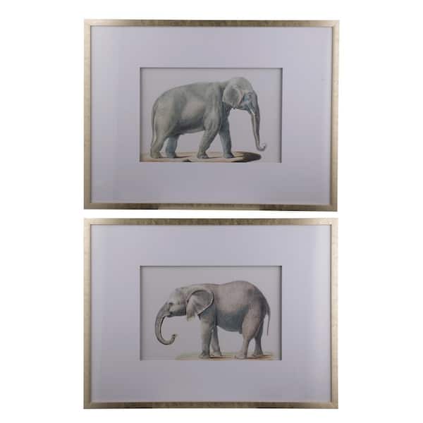 Framed Elephant White, Gold Pencil Drawings Wall Art (Set of 2)