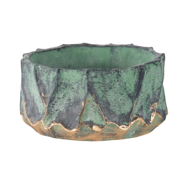 Green, Gold Concrete Planter