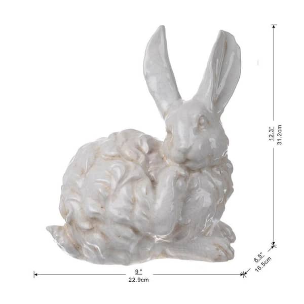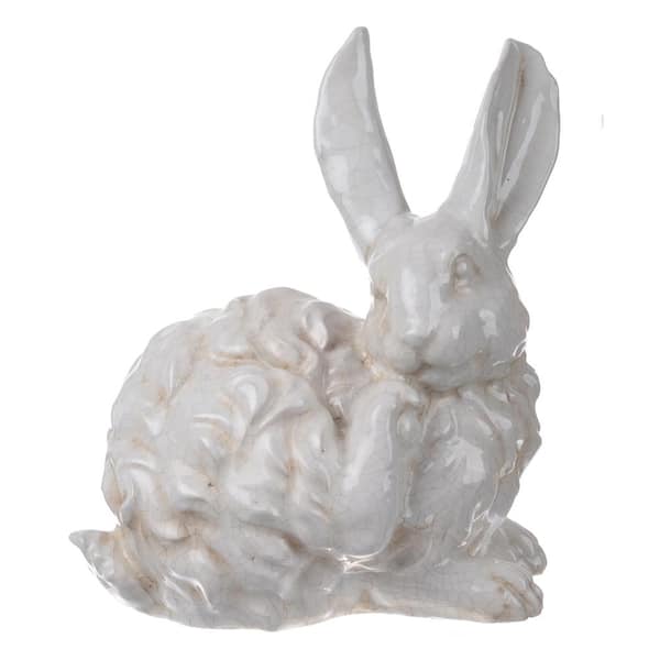 Hector Intent Long Eared Rabbit Statuette Distressed White