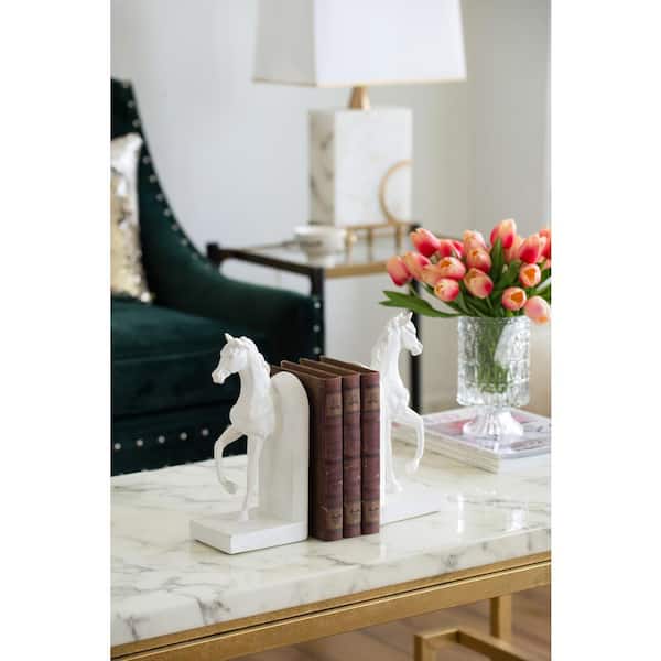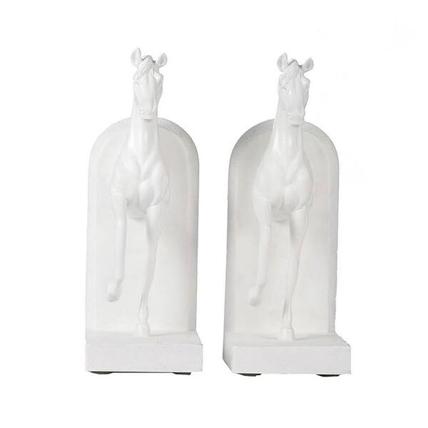 Trotting Matte White Metal Unthemed Horse Bookends (Set of 2)