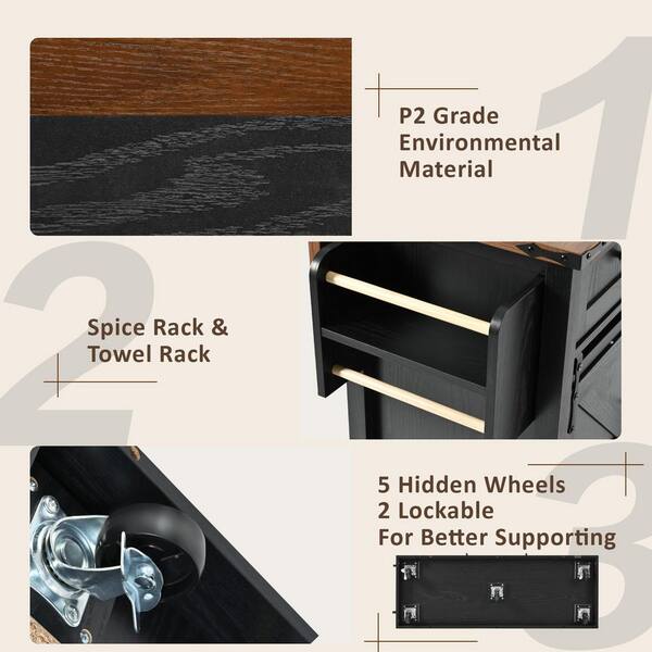 A Black Kitchen Cart with Power Outlets and Sliding Barn Doors
