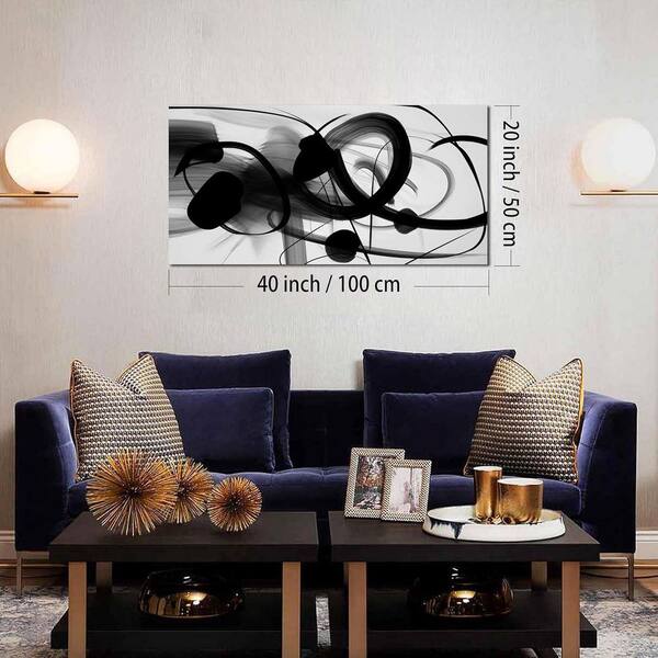 A Canvas Wall Art, Framed Abstract Line Black and White Picture Ink, 20 in. x 40 in. x 0.2 in.