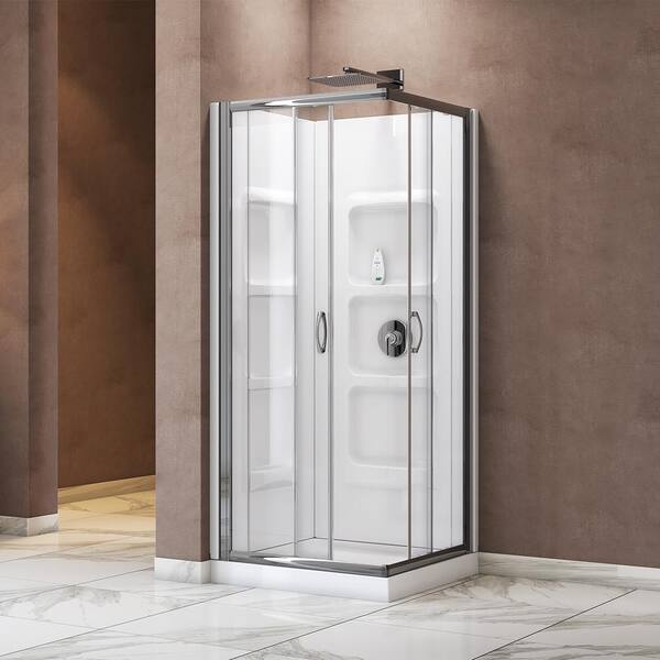 Danny 36 in. L x 36 in. W x73 in. H Center Drain Corner Shower Stall Kit in Chrome