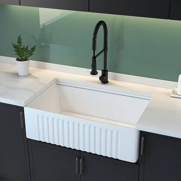 Maxie 33 in. Undermount Farmhouse Apron Front Rectangular Single Bowl White Ceramic Kitchen Sink with Fluted Front