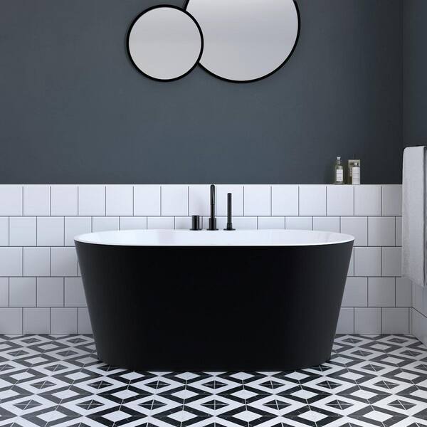 Retro 56 in. x 32 in. Soaking Bathtub with Center Drain in Matte Black