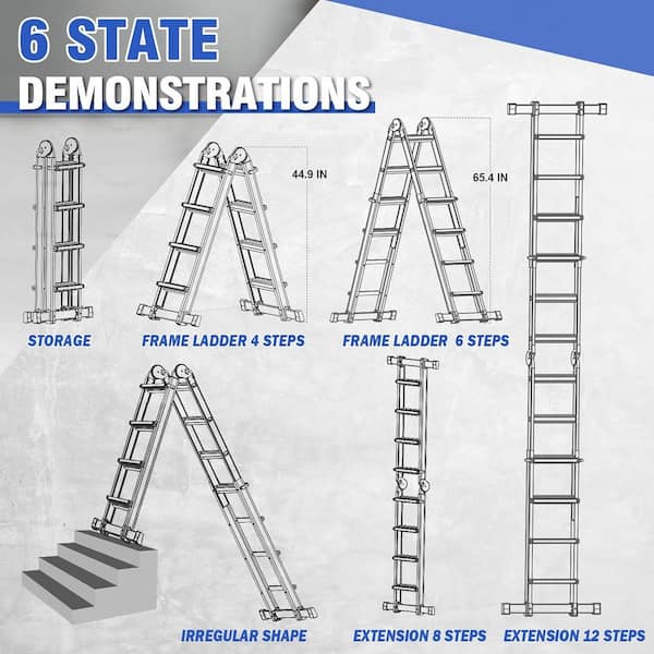 A Frame 5 Step Extension Ladder, 17 Ft Multi Position Ladder with Removable Tool Tray ,Reach,17ft,Steel