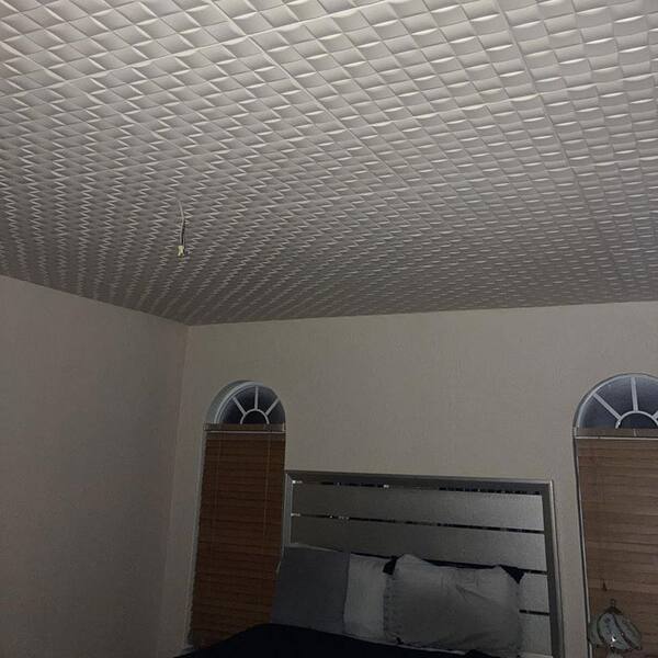Cobblestone Plain White 1.6 ft. x 1.6 ft. Decorative Foam Glue Up Ceiling Tile (259.2 sq. ft./case)