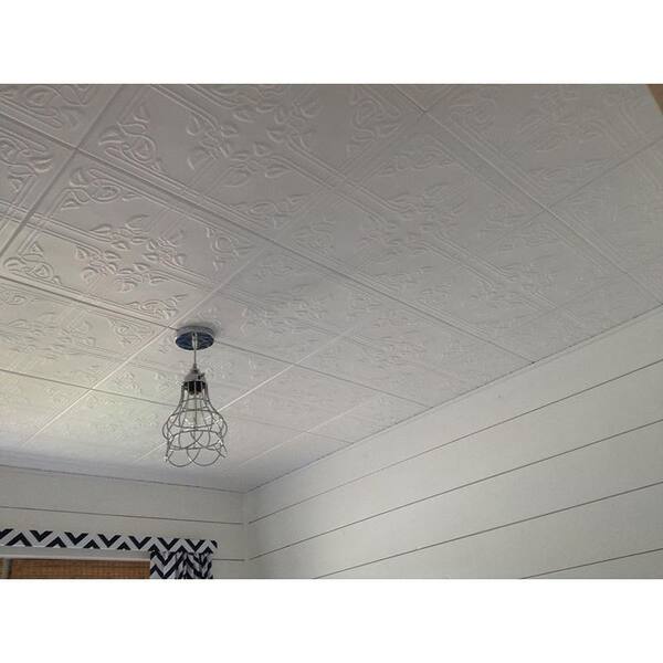 Ivy Leaves Plain White 1.6 ft. x 1.6 ft. Glue Up Foam Ceiling Tile (384 sq. ft. / Case)